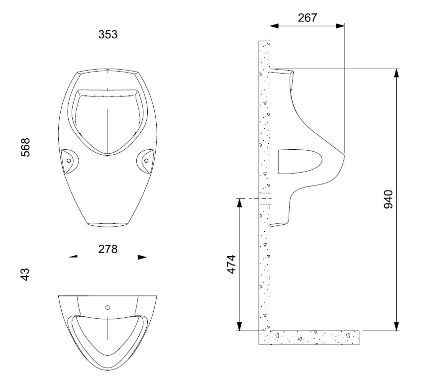 Este mingitorio de Celite viene con válvula de descarga y accesorios de instalación.